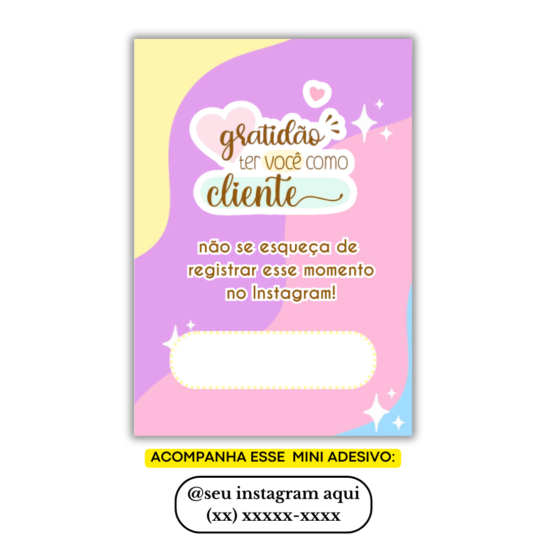 - Adesivo com instagram e whatsapp vão separados do mini panfleto!(tamanho 4x1 cm)
