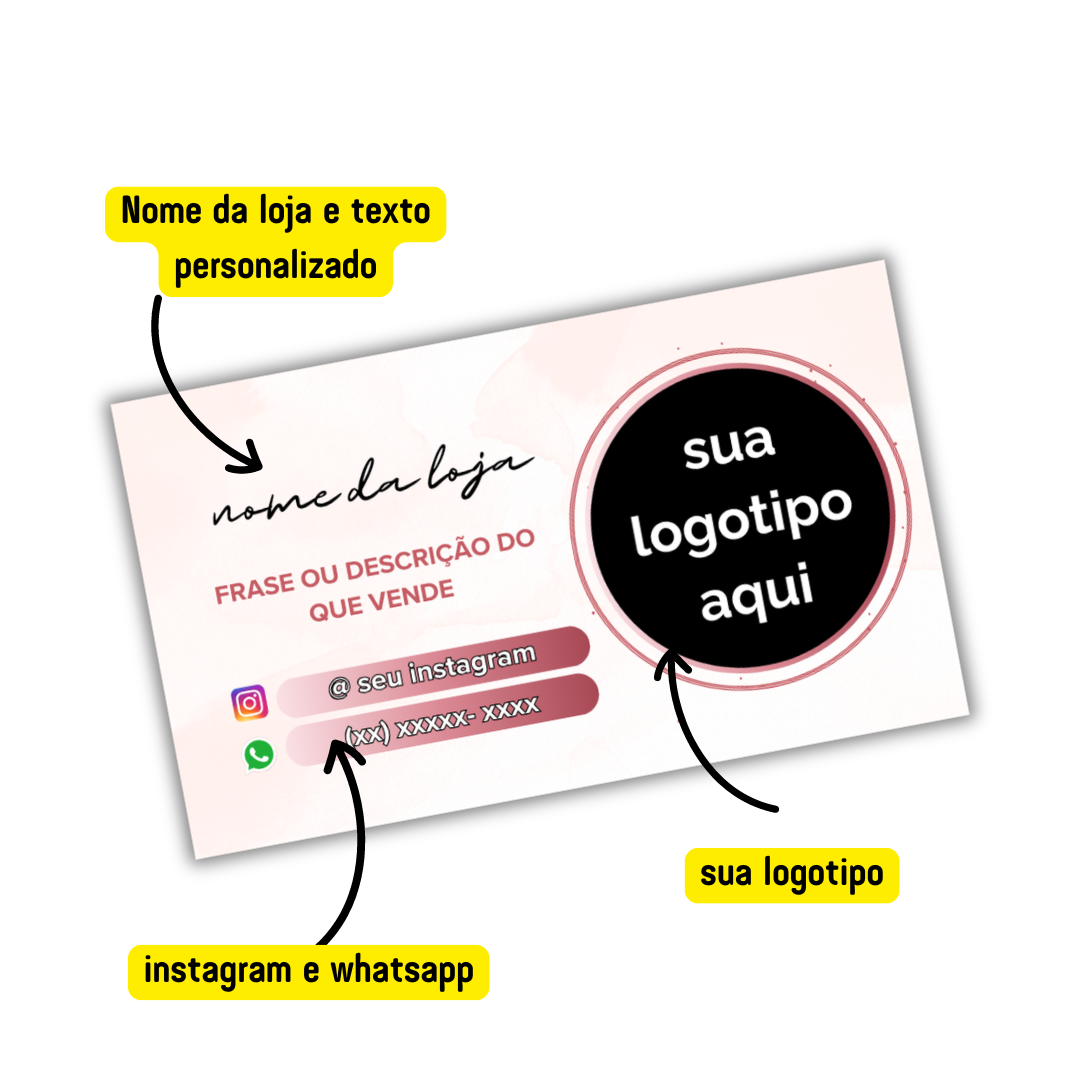 Na parte de trás um texto curto ou descrição curta do que vende, whatsapp e o @ do seu instagram!